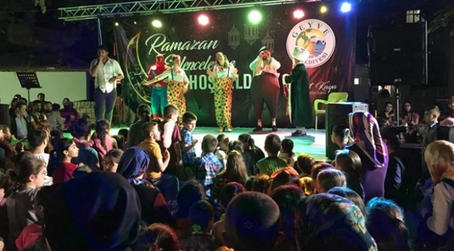 Bir birinden neşeli yarışmalar ve gösteriler ile gönüllerince eğlenen miniklerin neşeleri görülmeye değerdi.Geyve Belediye Parkında düzenlenecek etkinlikte ” Hacivat-Karagöz, Palyaço gösterileri, Çocuk yarışmaları, Aşuk-Maşuk, Keloğlan, Nasrettin Hoca, İbiş-Memiş, Disney karakterleri, Çoçuk mini disco, Ateşbaz Şhov gösterileri yer aldı.Hareketli oyun havaları ile coşan ve arkadaşları ile oynayan çocuklara büyükler de eşlik etti. Minik konser ile birlikte şarkılar söyleyen katılımcılar, yan çadırda dağıtılan pamuk şeker ve allı-güllü macun almak için adeta bir birleri ile yarıştı. Gece, birlikte neşeli müzikler eşliğinde oynayarak sona erdi.Geyve Belediyesi’nin Ramazan etkinliklerinin ikincisi de geride kalırken 23 Haziran’da son gösteri yapılacak…