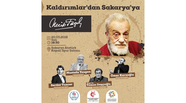 İlim Yayma Cemiyeti tarafından 20 Mart Salı Günü Adapazarı Atatürk Kapalı Spor Salonunda düzenlenecek etkinlik, saat 19.30’da başlayacak. Serdar Tuncer (Sunum ve şiir), Ömer Karaoğlu (Ezgi Konseri), Mustafa Yazgan (Hatıraları), Prof. Dr. Yılmaz Daşçıoğlu (Edebi Kişiliği) yapacağı sunum ve ezgilerle değerlerimiz konuşulacak. Programa tüm halkımız davetlidir.