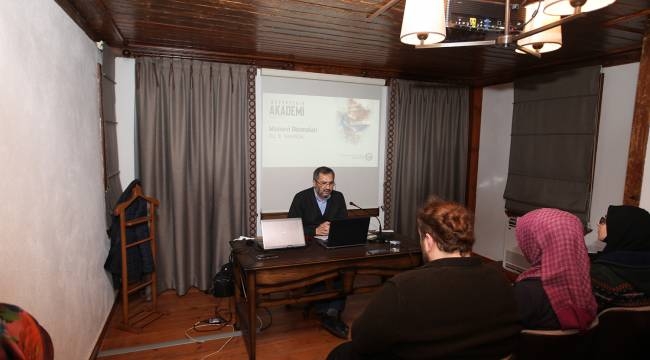 Büyükşehir Akademi’de Mesnevi Okumaları dersinde katılımcılarla buluşan Dr. Öğretim Üyesi Sezai Küçük, “Ney’in sesindeki yakıcılık ve akıcılık aşk acısından gelmektedir. Ney hakkında konuşurken 8 veya 10 tane karşılıktan söz etmiştik. Bunlardan bir tanesi ‘Âşıktır.’ Her insanın içinde bu manada yaratılıştan itibaren bir aşk ateşi bulunmaktadır. Ney anlatılırken söylenen her cümle ve her söz bizim kendi halimizin anlatımıdır” dedi.