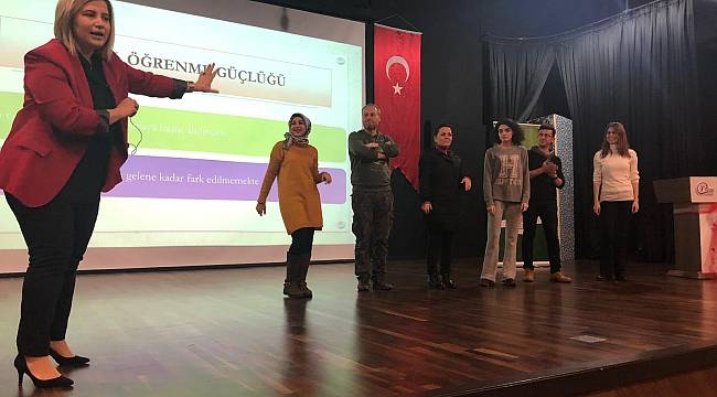 Kişilerin normal veya üstün zeka düzeyinde olmasına rağmen okuma, yazma ve dil becerilerinde problem yaşamalarına sebep olan özel öğrenme bozukluğu olarak adlandırılan Disleksi hakkında önemli bilgilerin sunulduğu eğitim programı Şehit Erol Olçok Anadolu Lisesi Konferans Salonunda yapıldı.