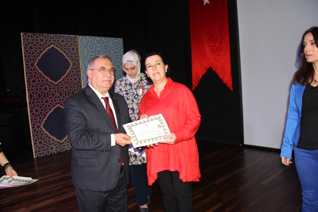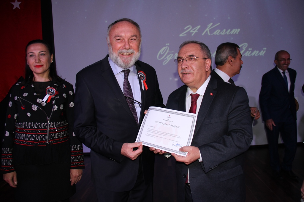 Programda daha sonra emekliye ayrılan Öğretmenler Alaettin Can, Hacer Uluköylü, Halit Duru, Sevil Zehra Kaplan, Mehmet Aydoğan, Hacer Türetken, Celil Kutlu, Kenan Orhan, Niyazi Baliç ve Vildan Soyhan’a Hizmet Şeref Belgeleri, Vali Ahmet Hamdi Nayir tarafından takdim edildi.