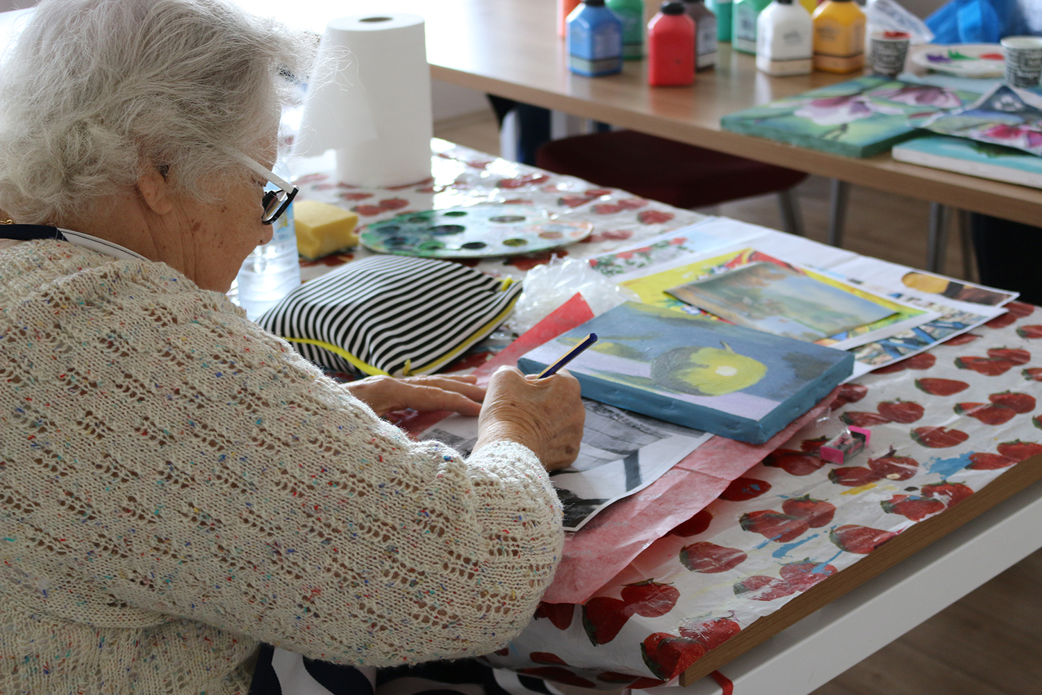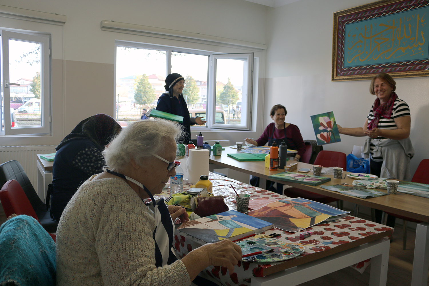 Konu hakkında açıklamalarda bulunan sosyal hizmetler Şube Müdürü Ahmet Öksüzoğlu, “Yaşlı Destek Merkezimizde eklenen yeni hizmetlerle birlikte faaliyetlerimiz devam ediyor. Özellikle resim kursumuza, hat kursumuza ve teknoloji kursumuza her geçen gün talepler daha da artıyor. Her Çarşamba saat 14.00’da sinema günlerimize de katılım bir hayli yoğun durumda. Hobi kurslarımızdan biri olan resim sanatında yaşlılarımız, kendilerine bir uğraş edinerek yeni sanat dallarında gelişmeler sağlıyorlar. Hobi kurslarımıza gelen sanat hocaları sayesinde yeni şeyler öğrenmenin yanında sanata olan yatkınlıklarını da tuvale aktarıyorlar. Eli öpülesi yaşlılarımızın her ihtiyacını karşılamaya devam edeceğiz” sözlerine yer verdi.