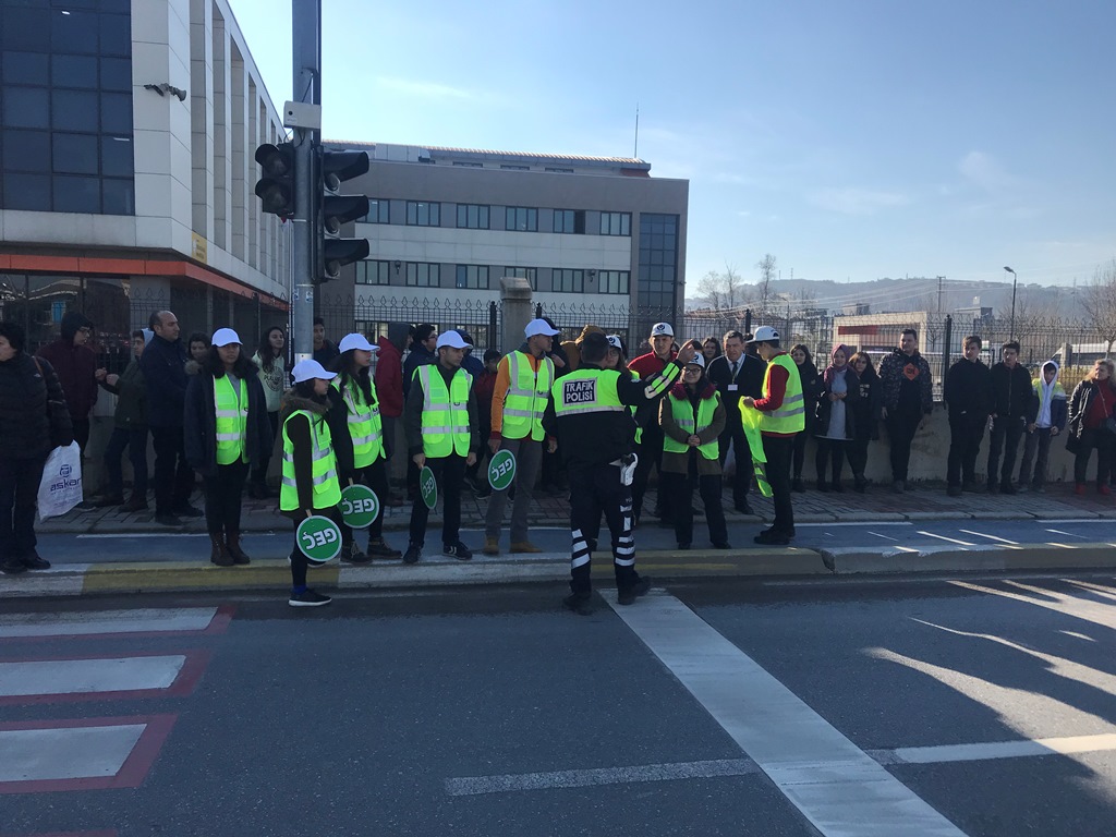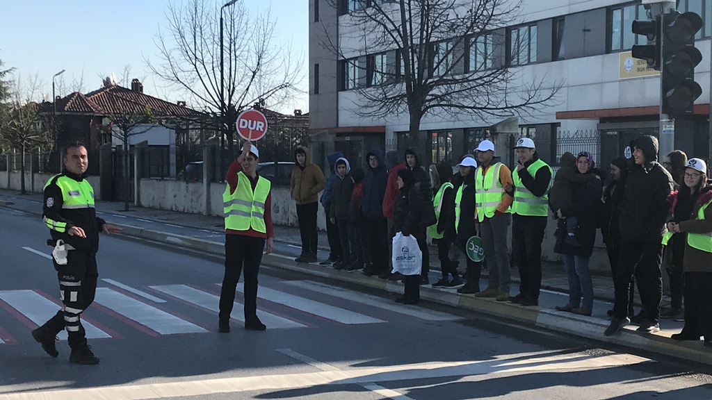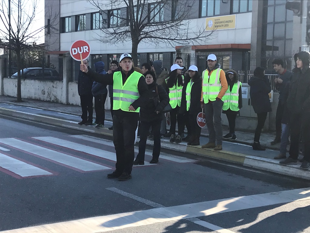 Okul Geçit Görevlileri 2918 sayılı Karayolları trafik Kanunun 134.üncü maddesi ve Karayolları Trafik Yönetmeliğinin 178.inci maddesince öğrencilerinin okul önlerinde ve okul geçitlerinde güvenli şekilde okula giriş ve çıkışlarını sağlamak amacıyla istekli öğretmen, öğrenci ve velileri kapsamaktadır. Sakarya Trafik Denetleme Eğitim Büro Amirliğinden Polis Memuru Murat Ünal tarafından Şehit Erol Olçak Lisesi konferans salonunda Mithatpaşa Anadolu Lisesi, Aydın Gürdamar Ortaokulu, Yunus Emre İlkokulu, Bahçelievler Gazi İlkokulu ve Şehit Erol Olçok Anadolu Lisesi’nde gönüllü öğrenci, öğretmen ve velilere teorik ve uygulamalı “Okul Geçit Görevlileri” eğitimi verildi. Eğitim sonunda Okul Geçit Görevlileri yazılı sınava tabi tutuldu. Uygulamalı olarak yapılan eğitimde öğrencilerin öncelikle kendi güvenliklerini almalarının önemi ve nasıl alacakları, okul geçidi kıyafetinin önemi ve araç gereçleri nasıl kullanacakları, araçları nasıl durdurmaları gerektiği, görevli olduğu okul geçidinde kendilerinin talimatları olmadan öğrencilerin ve sürücülerin hareket etmemeleri gerektiği, öğrencilerin karşıdan karşıya nasıl güvenli bir şekilde geçilebileceği anlatıldı. Uygulamalı eğitimlerin verildiği Şehit Erol Olçok Anadolu Lisesi Müdürü Fikret Güneş eğitimler sonunda yaptığı değerlendirmede; “Öncelikle gönüllü olan tüm öğrenci ve öğretmenlerimize teşekkür ediyorum. Çocuklarımızın günlük yaşamlarının büyük bir bölümü eğitim kurumlarında geçmekte ve okul emniyeti çocuklarımızın güvenliğinin sağlanması bakımından ayrı bir önem ve önceliğe sahip bulunmaktadır. Okul Geçit Görevlilerimiz sayesinde öğrencilerin karşıdan karşıya geçişlerinin kolay ve güvenli hale getirilmesi ve öğrencilerde trafik bilinci oluşturularak kurallara uymalarının sağlanması amaçlanmıştır. Eğitimleri veren Polis Memuru Murat Ünal’a, projeye destek veren İl emniyet Müdürlüğümüze ve İl Milli Eğitim Müdürlüğümüze çok teşekkür ediyoruz.” dedi.