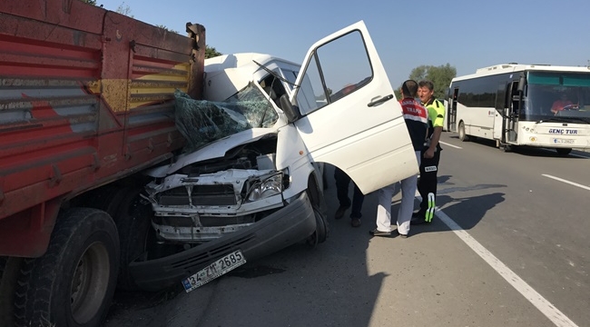 Ferizli'de ön lastiği kopan bir minibüs, emniyet şeridinde park halindeki kamyona çarptı. Meydana gelen kazada 4 kişi yaralandı.