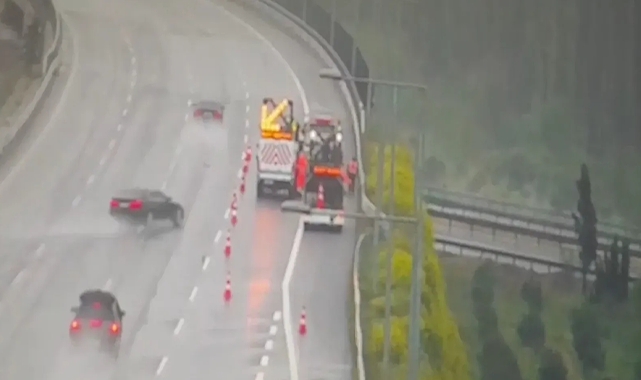 Öte yandan kaza anı güvenlik kamerası tarafından saniye saniye kaydedildi. Görüntülerde, en sol şeritte ilerleyen otomobilin birden kontrolden çıkarak şeritleri enine geçmesi, sağdaki çelik bariyerlere vurduktan sonra savrularak yol kenarında güvenlik önlemi alan çalışanlara çarpması yer alıyor.Kaynak: İHA