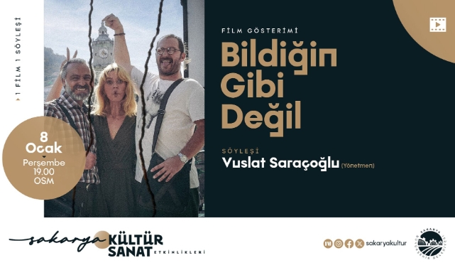 Sakarya Büyükşehir Belediyesi, Ocak ayı kültür sanat etkinlikleri kapsamında sinemaseverleri anlamlı bir buluşmaya davet ediyor. Türk sinemasının dikkat çeken yapımlarından “Bildiğin Gibi Değil”, 8 Ocak Perşembe günü saat 19.00’da Ofis Sanat Merkezi’nde izleyiciyle buluşacak.Yönetmen söyleşiye katılacakGösterimin ardından filmin yönetmeni Vuslat Saraçoğlu’nun katılımıyla bir söyleşi programı gerçekleştirilecek. Söyleşide filmin ortaya çıkış süreci, anlatım dili ve yönetmen bakış açısı üzerine değerlendirmeler yapılacak. Katılımcılar, yapımın perde arkasına dair sorularını doğrudan yönetmene yöneltebilecek.