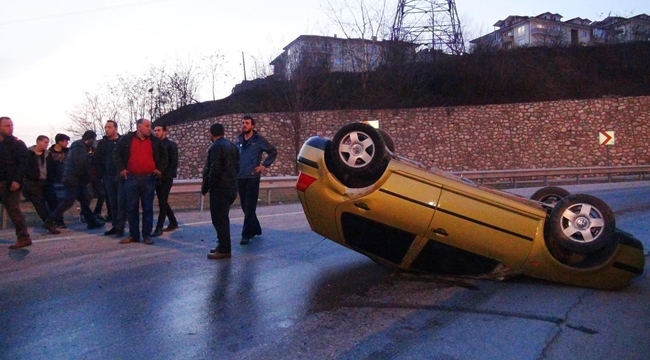 Edinilen bilgilere göre, Sakarya D-100 Karayolu Beşköprü mevkiinde meydana gelen kazada, 54 AR 339 plakalı otomobil, sürücüsünün Sapanca sapağına girerken direksiyon hakimiyetini kaybetmesi sonucu kontrolden çıkarak takla attı. Takla atan otomobilin sürücüsü ve otomobilde bulunan bir kişi hafif yaralandı. Kazayı gören vatandaşların haber vermesi üzerine olay yerine gelen 112 ekiplerince yaralılar Sakarya Eğitim ve Araştırma Hastanesine kaldırılarak tedavi altına alındı.