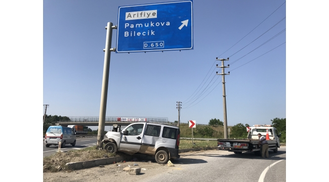 Arifiye ilçesinde hafif ticari aracın yön tabelasına çarpması neticesinde meydana gelen kazada 3 kişi yaralandı.