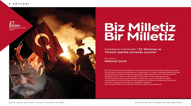 Sakarya Büyükşehir Belediyesi tarafından düzenlenen Ekim Kültür Sanat Etkinlikleri kapsamında 27 Ekim Perşembe günü 2 ayrı program gerçekleştirilecek. Günün ilk programında ‘Biz Milletiz Bir Milletiz’ söyleşisi AKM’de kültür sanat dostlarının beğenisine sunulacak. Saat 19.00’da başlayacak programa konuşmacı olarak ünlü tiyatro sanatçısı Mehmet Çevik konuşmacı olarak katılacak. Programda bir sanatçının gözünden 15 Temmuz süreci ve Türkiye üzerinde oynanan oyunlar ele alınacak. ‘Geçmiş’e Tanık OlunacakGünün ikinci programına ise Ofis Sanat Merkezi ev sahipliği yapacak. Ünlü yönetmen Asghar Farhadi’nin dikkat çeken yapımı ‘Geçmiş’ cep sinemada beyazperdeye yansıyacak. Sinemaseverler saat 20.00’da başlayacak ücretsiz gösterimde eski ve kuytuda kalmış bir sırrın su yüzüne çıktığı çarpıcı hikâyeye tanık olacak. Ücretsiz gösterim için rezervasyonlar [email protected] adresinden yapılabilecek. Büyükşehir Belediyesi’nden yapılan açıklamada, her iki programa kültür sanat dostları davet edildi.