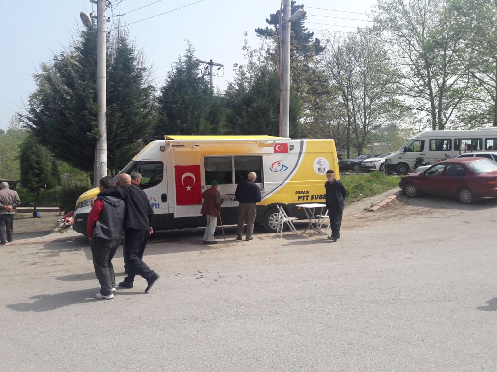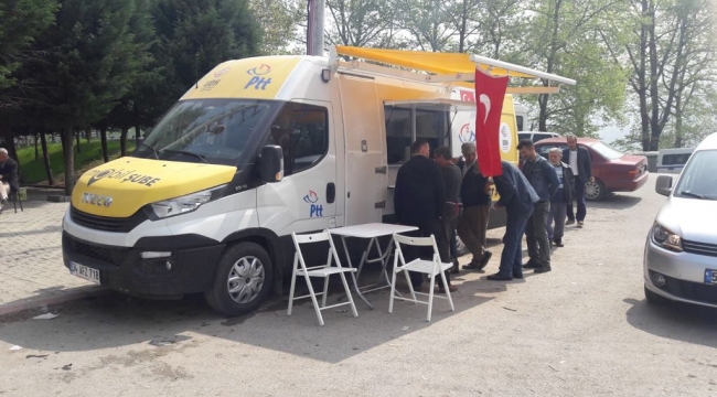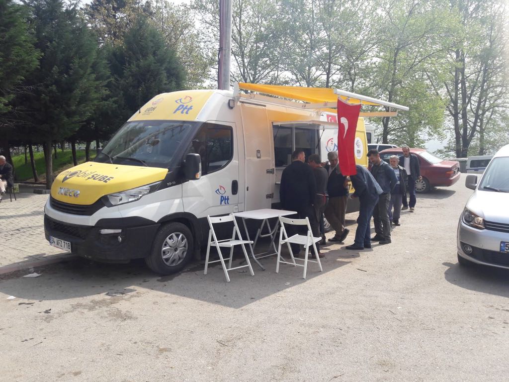 PTT hizmet ağını ayağa getiriyor. Başlatılan Mobil araç uygulaması ile bir şubede yapılan tüm işlemler yapılıyor.