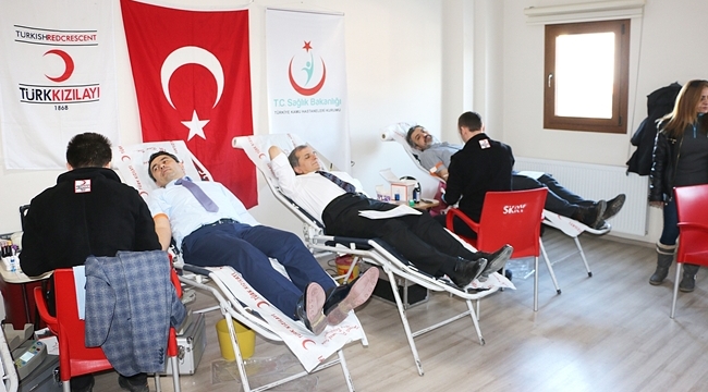 KAMU HASTANELERİ DESTEK VERDİSakarya Kamu Hastaneleri Birliği Genel Sekreterliği ile Kızılay sakarya Kan Bağışı Merkezi tarafından düzenlenen kan bağışı kampanyası kamu hastanelerinin ardından Genel Sekreterlik binasında devam etti. Genel Sekreter Doç. Dr. Hasan Salih Sağlam, Tıbbi Hizmetler Başkanı Opr. Dr. Özcan Öktem, İdari Hizmetler Başkan V. Dr. Hasan Bektaş, Mali Hizmetle Başkan V. Ahmet Kemiksizoğlu’nun destek verdiği kan bağışına personelde yoğun ilgi gösterdi. Kış aylarında soğuk algınlığı ve gribal enfeksiyonlar nedeniyle kan bağışında yaşanan azalmanın önüne geçmek için yapılan kampanyalar kapsamında kamu hastanelerinde ve devlet kurumlarında yürütülen bağış kampanyalarının önemli olduğunu dile getiren Genel Sekreter Doç. Dr. Sağlam, kan bağışının sağlık açısından da büyük önemi olduğunu ifade etti. KEMİK İLİĞİNİ GÜÇLENDİRİYORKan bağışında bulunan Sağlam, kan bağışının kemik iliği gelişimi açısından önemli olduğunu vurgulayarak “Düzenli kan bağışı vücudumuzun kan üretimi açısından öneli. Kemik iliği sürekli kan üretimi için çalışıyor ve bir nevi antrenman yapıyor. Bu durum sağlık açısından faydalıdır. Sağlıklı her yetişkinin düzenli kan bağışçısı olmasını sağlamak gerekiyor. Kan ihtiyacı sağlık tesislerimizde acil durumlarda, ameliyatlarda hayati önem taşıyor. Ülkemizde kan toplama işi Kızılay’a verilmiş. Bizde kamu hastaneleri olarak bağış konusunda her zaman elimizden gelen desteği vermeye çalışıyoruz.” diye konuştu. Genel Sekreterlik Kan Bağışı Kampanyası Koordinatörü Uz. Ömer Karayel, kızılay Sakarya Kan Bağışı Merkezi Koordinatörü İlke Dölek ile Dr. Murat Göl, kan bağışı çalışmalarıyla ilgili bilgi Genel Sekreter Sağlam’a bilgi verdi.