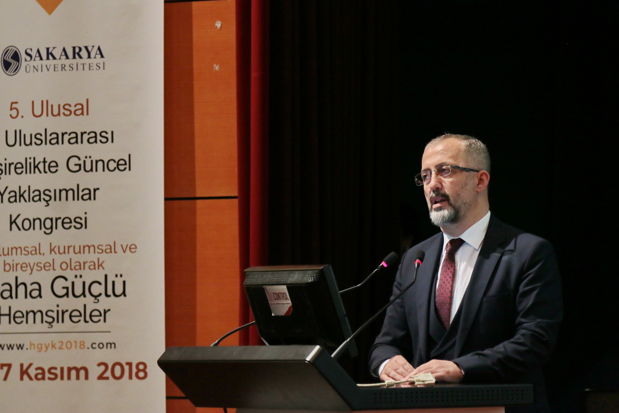 Sakarya İl Sağlık Müdürü Aziz Öğütlü de konuşmasında hemşireliğin sağlık sektörünün merkezinde yer aldığını, hemşirelik hizmetleri alanına yapay zekâ ve teknolojinin dâhil edilmesi gerektiğini ifade etti.