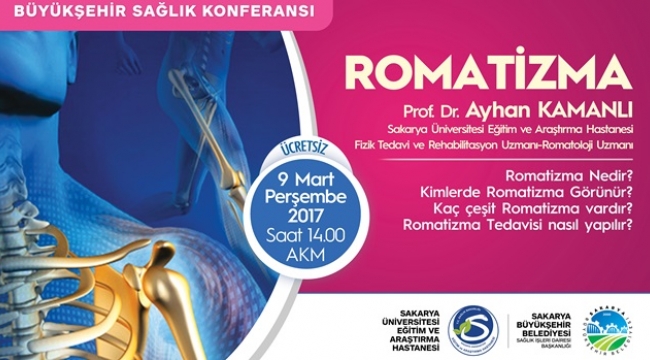 Büyükşehir Belediyesi ve SAÜEAH işbirliği ile düzenlenen sağlık konferanslarında bu hafta ‘Romatizma’ konuşulacak. 9 Mart Perşembe günü gerçekleştirilecek program saat 14.00’da başlayacak.