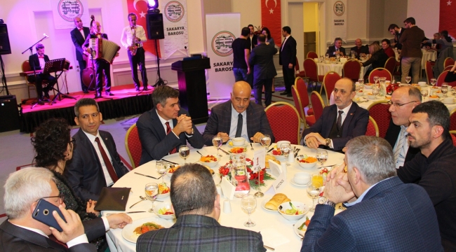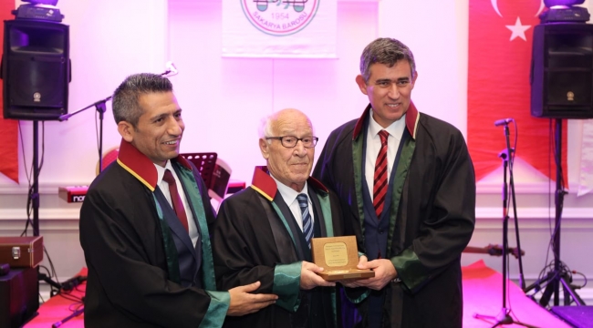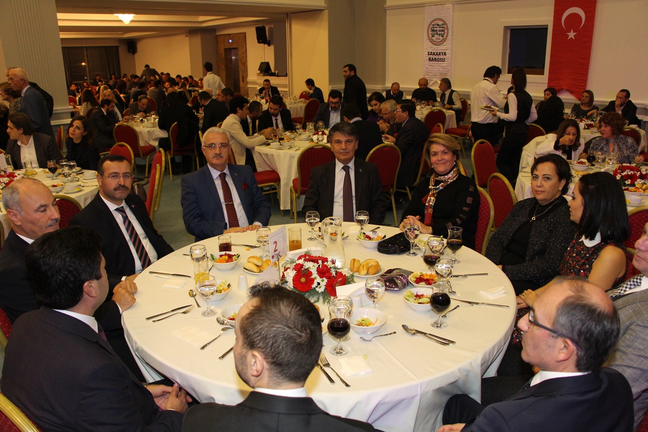 Sakarya Barosunun 64. Kuruluş Yıl Dönümü münasebetiyle düzenlenen kutlama programına Baro Başkanı Av. Abdurrahim Burak’ın daveti ile Türkiye Barolar Birliği Başkanı Av. Prof. Dr. Metin Feyzioğlu, Anasaya Mahkemesi Baskan Vekili Prof. Dr. Engin Yıldırım, Anasaya Mahkemesi üyesi Celal Mümtaz Akıncı, Ak Parti Milletvekili Kenan Sofuoğlu, sakarya Büyükşehir Belediye Başkanı Zeki Toçoğlu, Sakarya Cumhuriyet Başsavcısı Lütfi Dursun, Sakarya Adalet Komisyonu Başkanı Mehmet Sertaç Kesler, Kocaeli Cumhuriyet Başsavcısı Habib Korkmaz, Kocaeli Adalet Komisyonu Başkanı Muhittin Paça, Sakarya Bölge Adliye Mahkemesi Başkanı Nuri Koçer, Bölge Adliye Mahkemesi Daire Başkan ve üyeleri, Sakarya Üniversitesi Rektörü Prof. Dr. Fatih Savaşan, Sakarya Uygulamalı Bilimler Üniversitesi Rektörü Prof. Dr. Mehmet Sarıbıyık, Kocaeli Barosu Başkanı Av. Bahar Gültekin Candemir, Düzce Barosu Başkanı Av. Azade Ay, Emniyet Müdürü Fatih Kaya, Sakarya Üniversitesi Hukuk Fakültesi Dekanı Prof. Dr. Mahmut Bilen, Erenler Belediye Başkanı Cavit Öztürk, Serdivan Belediye Başkan Yrd. Selvet Karaoğlu, Mhp İl Başkanı Av. Ahmet Ziya Akar, Muhtarlar Derneği Başkanı Erdal Erdem, önceki dönem Baro Başkanları ve avukatlar katıldı. Gecede Avukatlık mesleğinde 50. yılını tamamlayan Av. Yusuf Topaloğlu ve Av. Ahmet Oktay Doğancı’ya plaketini Türkiye Barolar Birliği Başkanı Av. Prof. Dr. Metin Feyzioğlu40. yılını tamamlayan Av. Bedri Aytaç’a plaketini eşi Mualla Aytaç25. yılını tamamlayanAv. İsmail Alper Altan’a plaketini Av. Leyla ÖztürkAv. Leyla Öztürk’e plaketini Baro Başkanı Av. Abdurrahim BurakAv. Orhan Kaptan’a plaketini önceki dönem Baro Başkanlarından Av. Kazım YılmazAv. Handan Durdu’ya plaketini önceki dönem Baro Başkanlarından Av. Nihat NalbantoğluAv. Yakup Ali Çakmak’a plaketini Av. Cengiz Güvenve programa katılamayan Av. Murat Önal’ın adına Av. Recep Hacıeyüpoğlu’na plaketini eski Baro Başkanlarından Av. Ali Rıza Acartürk tarafından takdim edildi.