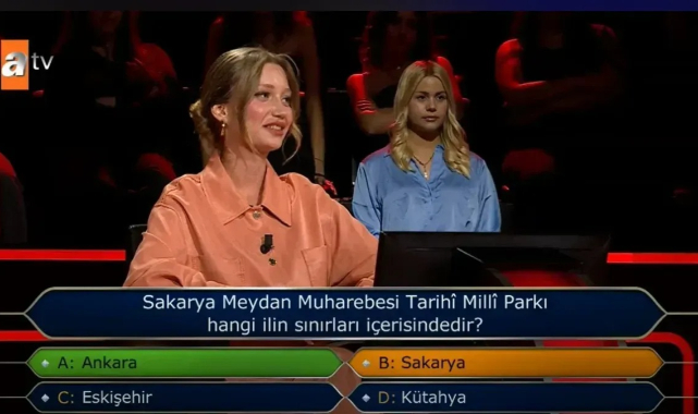 Kim Milyoner Olmak adlı programda 100 bin liralık “Sakarya Meydan Muharebesi Tarihi Milli Parkı hangi ilin sınırları içerisindedir?” sorusuna Sakarya cevabı veren yarışmacı elendi.