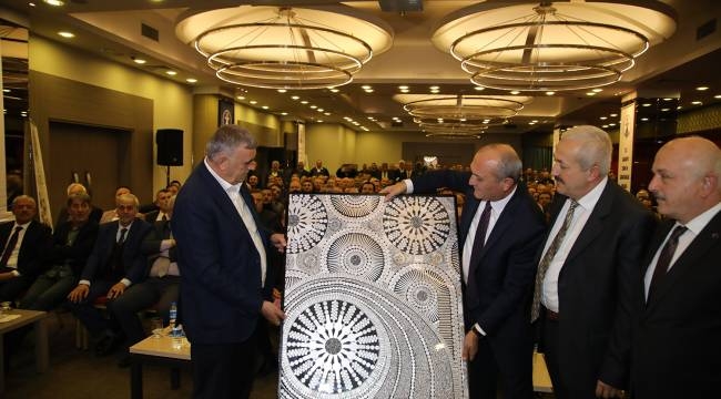 Sakarya Büyükşehir Belediye Başkanı Zeki Toçoğlu, sakarya Esnaf ve Sanatkarlar Odaları Birliği’nin düzenlediği Başkanlar Kurul Toplantısı’na katıldı. Sen Otel’de gerçekleştirilen toplantıda Başkan Toçoğlu’nun yanı sıra sesob Başkanı Hasan Alişan ve Başkanlar Kurulu üyeleri yer aldı. Başkan Toçoğlu, Türkiye Boks Şampiyonası’nda kendi kategorisinde Türkiye Birincisi olan Geyve Anadolu Lisesi 10. sınıf öğrencisi Ece Asude Ediz’e ödülünü takdim etti. SESOB Başkanı Hasan Alişan ve Süpürgeciler esnafı günün anısına Başkan Toçoğlu’na hediye takdim etti. Gurur duyuyoruz SESOB Başkanı Hasan Alişan “On yıldan beri Sakarya Büyükşehir Belediye Başkanlığı’nı yapan Sayın zeki toçoğlu ile uyum içerisinde çalışarak esnafımıza hizmet ettik. Mensuplarımızın elde ettiği hizmetlerin yanı sıra bizde birlik olarak başkanımızla birlikte gerçekleştirdiğimiz projeler ile her zaman şehrimiz için çalıştık. Görev yaptığı süre boyunca her zaman esnafın yanında olan Başkanımıza temsil ettiğim birliğim ve şahsım adına teşekkür ediyorum. Esnafın sorunlarını her zaman samimiyetle dinleyen ve kalıcı çözümler üreterek yanımızda olduğunu hissettiren Başkanımız Zeki Toçoğlu’nu aramızda görmekten gurur duymaya devam edeceğiz” dedi. Birlikte çalıştıkEsnaf ve Sanatkârlar Odaları Birliği’nin üyeleriyle bir arada olmaktan büyük memnuniyet duyduğunu ifade ederek sözlerine başlayan Başkan Toçoğlu, “10 yıllık Büyükşehir Belediye Başkanlığı görevimi 31 Mart’ta tamamlayacağım. Geride bıraktığımız süreçte birlikte pek çok çalışmaya birlikte imza attık. Ortak projeler ürettik. esnaf odalarımızla iletişim halinde olduk. Hamdolsun bugün buradaki tablo oluşturduğumuz samimiyet ve beraberliğin tezahürüdür” dedi. Büyüyen ve gelişen bir şehirBaşkan Toçoğlu, sözlerini şu şekilde sonlandırdı: “Sakarya bugün iş gücü potansiyeliyle ve ekonomisiyle her geçen gün büyüyen ve gelişen bir şehir. Her zaman ifade ettiğim gibi biz Sakarya’yı bugünlere hep birlikte getirdik. Benim için önemli olan kimsenin gönlünü kırmadan aranızdan bu şekilde güzel ayrılmaktı ve görüyorum ki bunu başarmışım. Allah hepinizin işini rast getirsin. Allah herkese böyle bir tabloyla bu işleri sonlandırmayı nasip etsin. Hepinize bol, bereketli, hayırlı işler diliyorum” dedi.