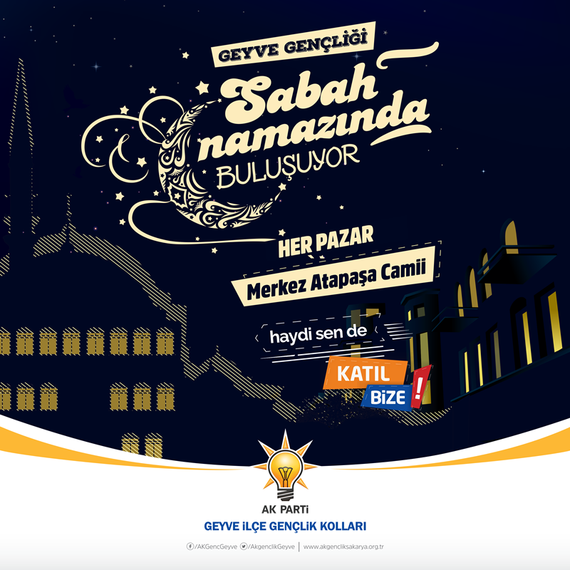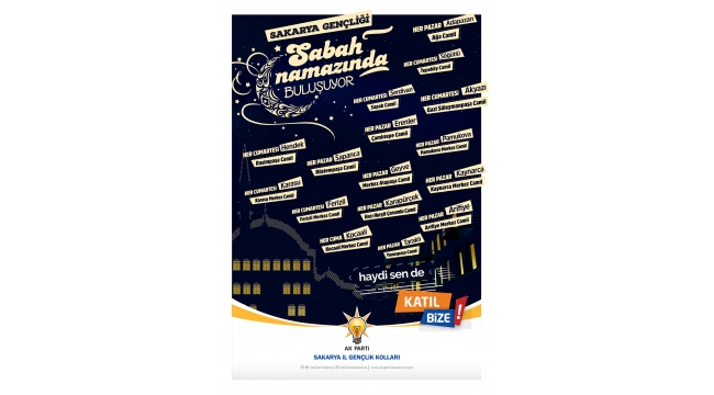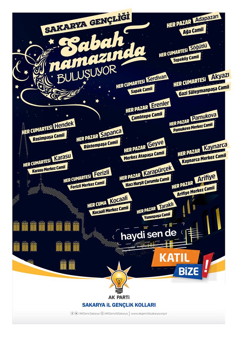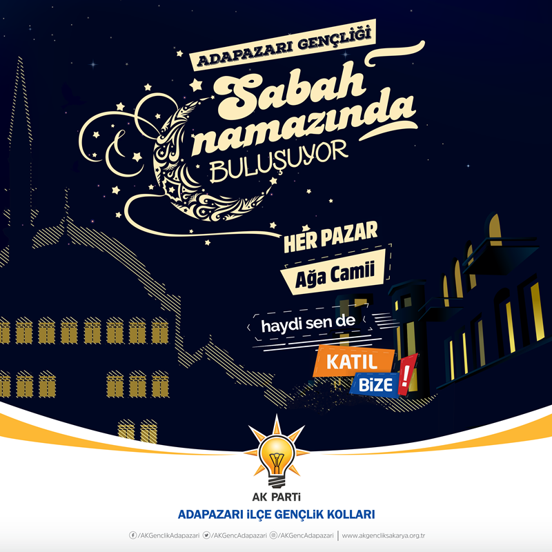 AK Parti Sakarya İl Gençlik Kolları şehrin tüm ilçelerinde gençleri “Sabah Namazı Buluşmalarına” davet ediyor.