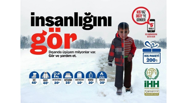 İl içinde yapılan yardımlardan bahseden sakarya İHH başkanı Sebahattin Aydın, yaklaşık 250 kişiye kışlık yakacak ulaştırdıklarını söyledi ve yardımların devam ettiğini belirtti.Aydın; ‘’Dışarıda üşüyen milyonlar var. Gör ve yardım et’’ sloganı ve ‘’ İnsanlığını gör’’ adıyla kış kampanyası başlattık. Şehrimizde ve dünyanın bir çok mağdur ve mazlum coğrafyasında ihtiyacı olan kardeşlerimize yardım eli uzatmak bizlerin insani görevidir. Kış ayları en çok onlar için zor geçiyor. Her yıl binlerce insan evlerini savaşlar sebebiyle terk etmek zorunda kalıyor. Binlerce göçmen çıktıkları yolculukta hayatlarını kaybediyor. Geri kalanlar kışın dondurucu soğuğuyla yüzleşiyor. Kış, mülteci kamplarında soğuk, hastalık ve ölüm anlamı taşıyor dedi.Aydın; milyonlarca ihtiyaç sahibinin elbise, bot, battaniye ve gıdaya ihtiyacı var. Desteğinizle ihtiyaç sahiplerine ulaşabiliriz şeklinde konuştu.Kampanya hakkında bilgi veren Aydın; Neden “İnsanlığını gör” Milyonlarca Suriyeli yıllardır mülteci kamplarında yaşam mücadelesi veriyor. Yemen’de çatışmalar içinde kalan binlerce çocuk gıda ve sağlık ürünlerine ulaşamıyor. Arakan'da ölümden kaçan milyonlarca mülteci Bangladeş'teki kamplarda hayatta kalmaya çalışıyor. Gazze’de ambargo ve abluka altındaki insanlar dünyanın en büyük açık hava hapishanesinde yaşıyor.Dünyanın dört bir yanında yoksulluk, savaş ve doğal afetler sebebiyle milyonlarca insan kış aylarını zorlu şartlar altında geçiriyor. Soğuğun yanı sıra çocuk ve yetişkinler hastalıklar ile mücadele etmeye çalışıyor. Sığınacak sıcak bir yuvadan mahrum mülteciler için şartlar daha da zorlaşırken soğuktan dolayı ölümler meydana geliyor. Kış en çok küçücük bedenleri ile yaşama tutunmaya çalışan çocukları zorluyor. Onların geceleri daha sıcak bir yuvada sağlıklı bir şekilde uyumaları için eksiklerini tamamlamaya gayret gösteriyoruz şeklinde ifade etti.Aydın son olarak, kış kampanyasına destek olmak isteyenlerin ister il içinde ister yurt dışında fark etmeksizin nereye isterlerse yardımlarını ihtiyaç sahiplerine ulaştıracaklarını söyledi ve tüm yardımseverleri Sakarya İHH yeni camii ve Orhan camii yanındaki dernek merkezleri aracılığıyla ya da banka yoluyla yardım yapmaya davet etti.