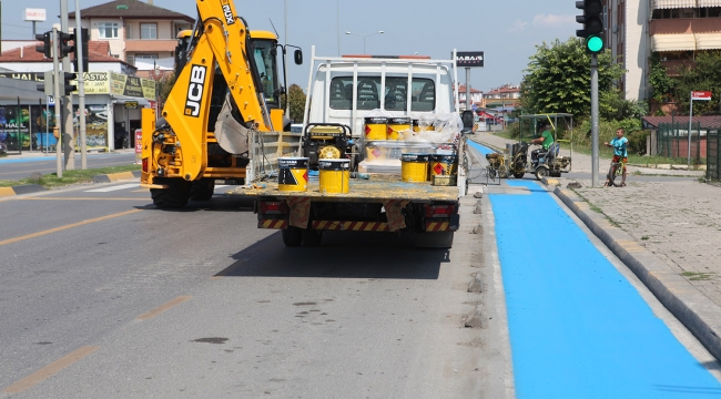 Büyükşehir ekipleri ‘Tour Of Sakarya’ bisiklet yarışı öncesinde Ozanlar Valide Camii ile Yazlık Kavşağı arasındaki bisiklet yollarıyla, Eski Kazımpaşa Caddesi üzerindeki bisiklet yollarının bakım, onarım, temizlik ve boya işlemlerini gerçekleştirdi.
