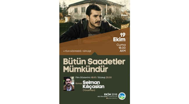 Büyükşehir Ekim Kültür Sanat Etkinlikleri Sakarya’da geçen gerçek bir hikayeden uyarlanan Bütün Saadetler Mümkündür filminin gösterimi ve ardından gerçekleştirilecek söyleşi ile devam edecek. 19 Ekim Cuma günü AKM’de gerçekleştirilecek etkinlik saat 18.00’da başlayacak.