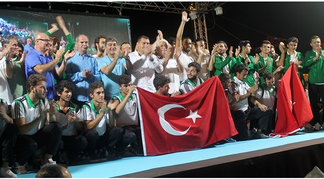 Sakarya Demokrasi Meydanı Bolu kampından dönen Sakaryaspor kafilesini ağırladı. Programda konuşan Kulüp Başkanı İsmail Gürses, “Doğusuyla batısıyla, kuzeyiyle güneyiyle bu milletin birliğini ve beraberliğini bozmaya dün olduğu gibi bugünde kimsenin gücü yetmeyecektir. Hepimiz tek devletin bireyleriyiz” derken Aytaç Ak ise; “Ben inanırım ki her şerde bir hayır vardır. Bu şer gibi gözüken olayda da çok güzel hayırlar çıkacaktır” dedi.