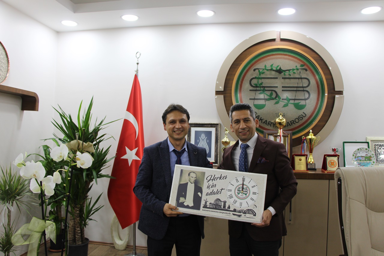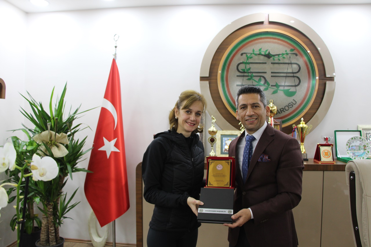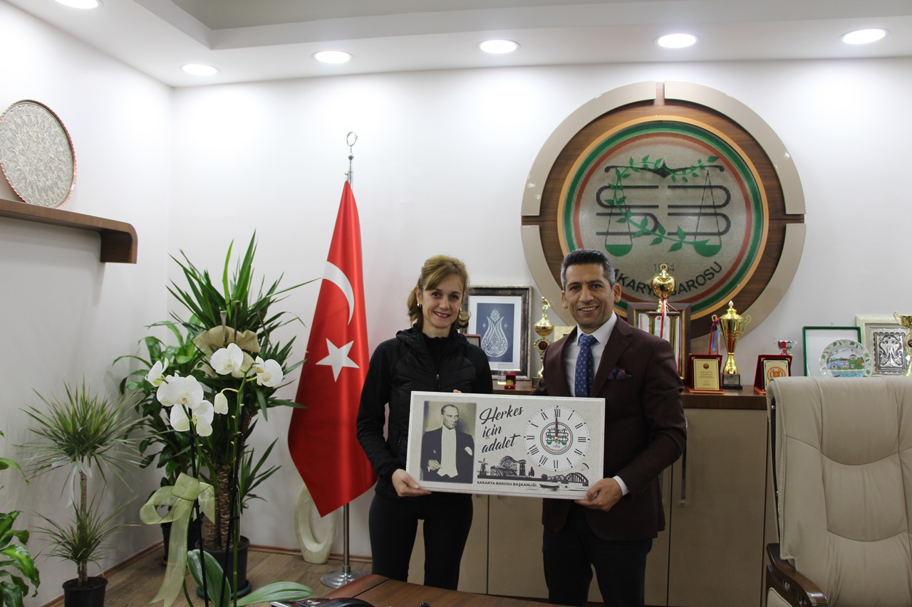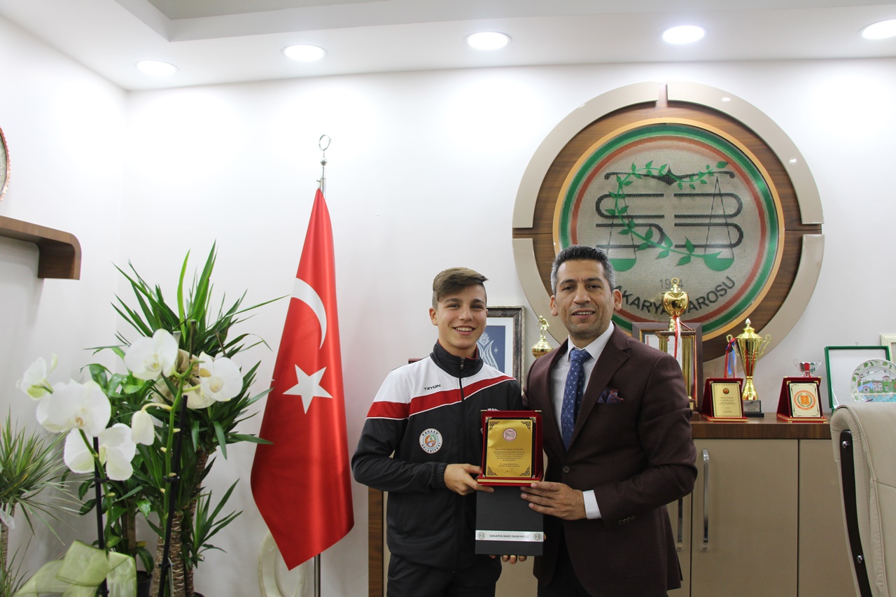 Aerobik jimnastik dalında birçok madalya ve kupalar kazanan Sakaryalı sporcularımız Ahmet Meriç Turmamış, Ecem Barklı ve Berra Yazıcı Antrenörleri Semra Ediz, sakarya Adliyesi çalışanı ve Ahmet Meriç Turmamışın babası Mesut Turmamış ile birlikte Baro Başkanı Av. Abdurrahim Burak’ı ziyaret ettiler.Baro Başkanı Av. abdurrahim burak genç sporcuların başarılarından dolayı gurur duyduğunu, şehrimizi çok güzel bir şekilde temsil ettiklerini ifade ederek başarılarının devamını diledi. Başkan Burak günün anısına plaket ve hediyeler takdim etti.