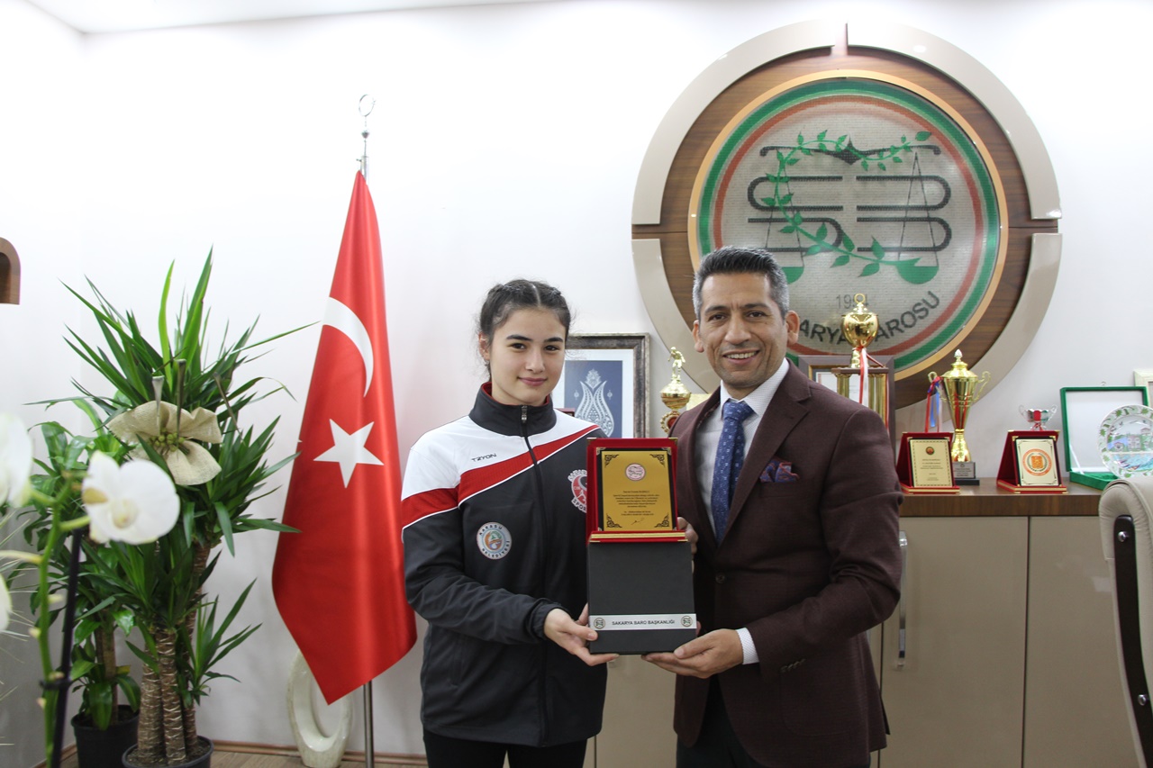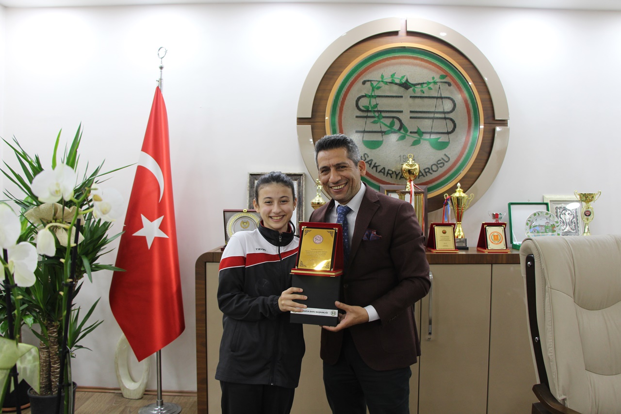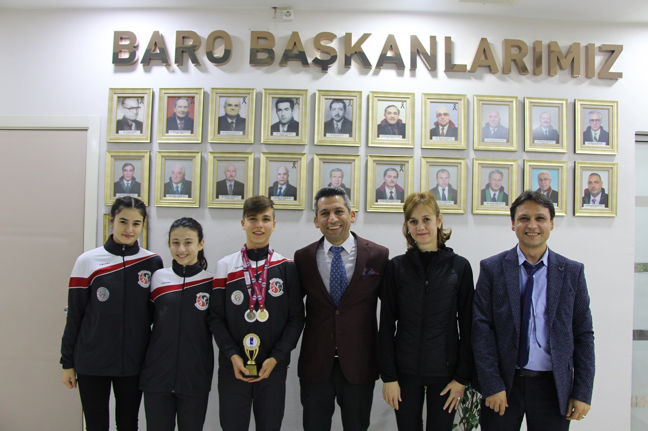 Aerobik jimnastik dalında birçok madalya ve kupalar kazanan Sakaryalı sporcular, Baro Başkanı Abdürrahim Burak’a ziyarette bulundular.