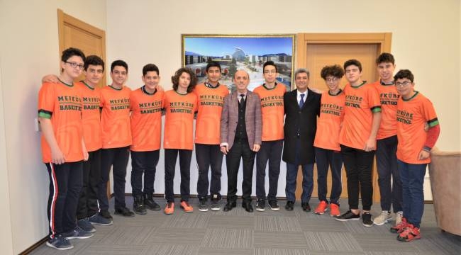 Sakarya İl Şampiyonu Özel Mefkûre Ortaokulu Erkek Basketbol Takımı, Erenler Belediye Başkanı Cavit Öztürk’ü makamında ziyaret etti. Ziyarette Başkan Öztürk, Sakarya İl Birincisi olan Mefkûre Basketbol Takımı’na Türkiye grup maçlarında başarılar diledi.