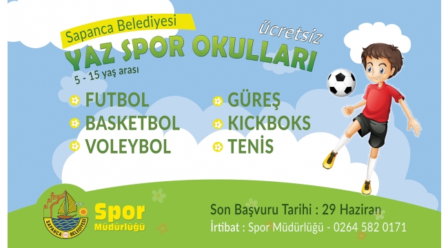 Sapanca Belediyesi tarafından yaz döneminde tenisten, futbola kadar 6 farklı branşta yaz dönemi kursları verilecek.