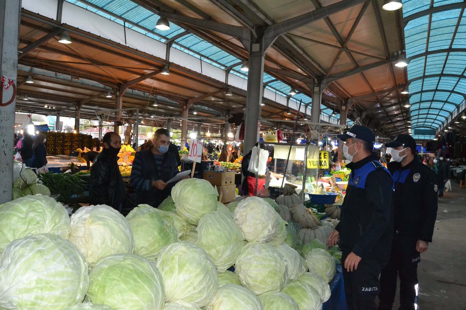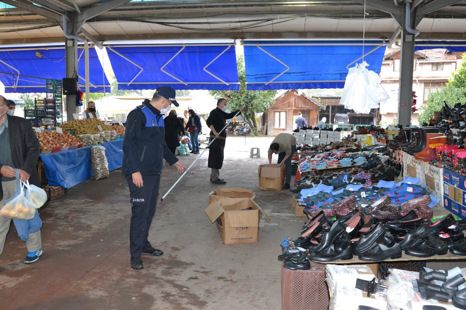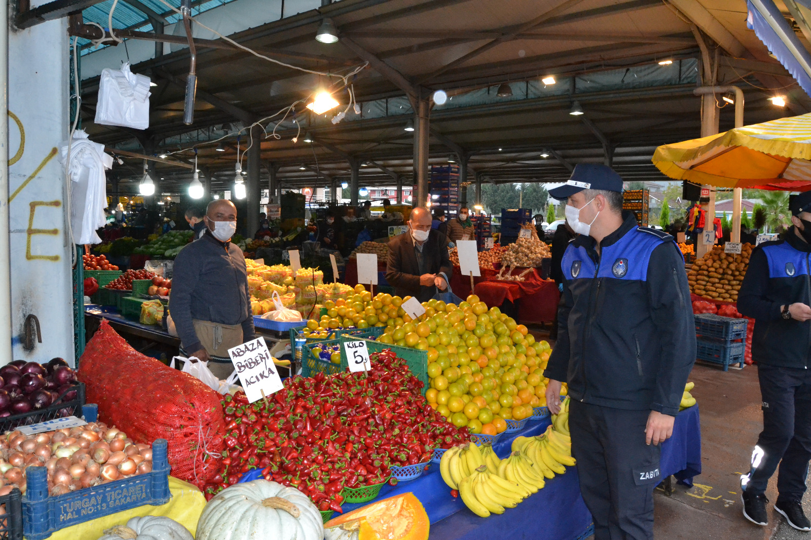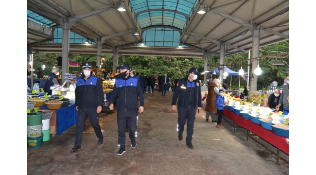 Sapanca Belediyesi Zabıta Müdürlüğü ekipleri, Cuma Semt pazarında maske - sosyal mesafe denetimi ve etiket kontrolü gerçekleştirdi.