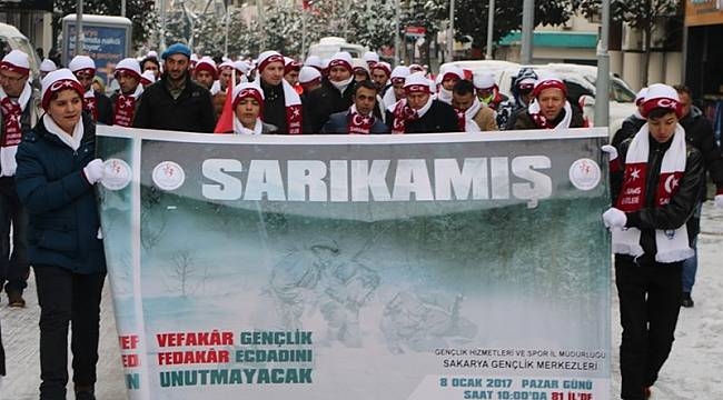 Gençlik ve Spor Bakanlığınca 81 İlde sarıkamış harekatında şehit olanlar için yürüyüş düzenleniyor. İlimizde de Sarıkamış harekatının 104. Yılında Sarıkamış dağlarında şehit olan dedelerimizi ve onların nezdinde tüm şehitlerimizi yad etmek amacıyla , Gençlik Merkezi Adapazarı'nda yürüyüş gerçekleştirecek. 6 Ocak 2019 Pazar günü saat 09:45’de sakarya Yüzme Havuzunda toplanacak olan gençler , saat 10:00’da yürüyüşe başlayacaklar.