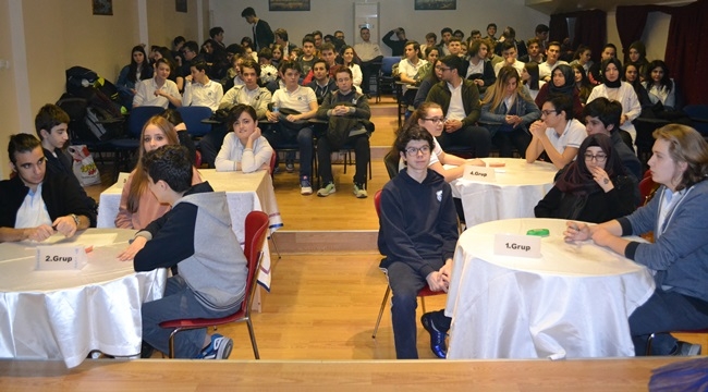 Türk Dili Bilgi Yarışması adı altında yapılan etkinlikte üçer kişiden dört ayrı grup oluşturuldu. Gruplar arkadaşlarının da kendilerini seyrettiği platformda, ekrana yansıyan sorulara cevap verdiler.30 sorunun sorulduğu bilgi yarışmasında kıyasıya rekabet sürdü.Sorulara en çok doğru cevap veren gruba, etkinliği düzenleyen Türk Dili ve Edebiyatı zümresi öğretmenleri tebriklerini sundu. Hediyeleri Okul Müdürü Ahmet KİREMİTÇİOĞLU tarafından bizzat verilen, programdan oldukça mutlu ayrıldılar.