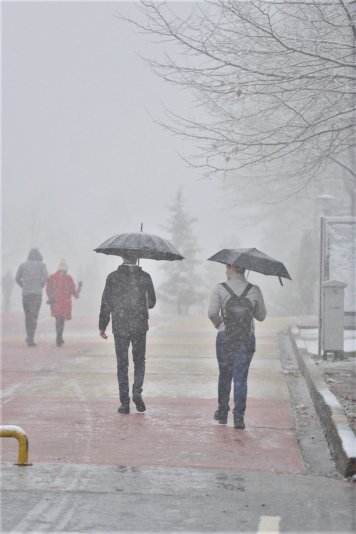 SAÜ esentepe Kampusü’nde de sabah saatlerinde yağmur şeklinde başlayan yağış, ilerleyen saatlerde yerini kara bıraktı. Öğle saatlerinde etkisini gösteren kar yağışı kampüsü beyaza boyadı.