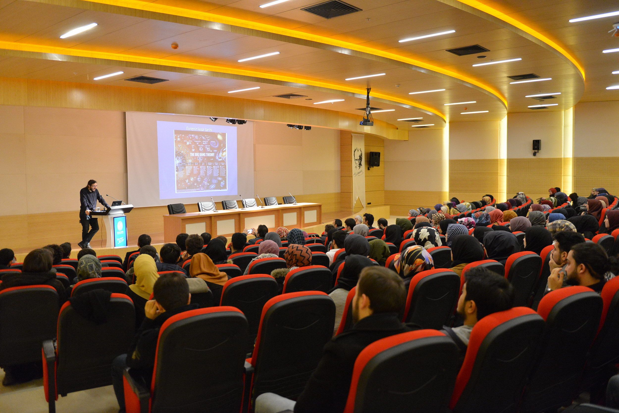 Dr. Öğr. Üyesi Enis Doko konuşmasının başında bilimin doğa yasaları ya da doğal nedensellikle evreni açıkladığını söyledi. Dr. Öğr. Üyesi Doko, “Ama bu yasaların niçin var olduğu bilimin konusu değildir. ‘Bu yasalar niye var?’, ‘bu yasalar niye bu şekilde?’ gibi sorular bilimin değil, daha çok felsefenin alanına girer. Bu yüzden bugün konuşacağım bilimsel gizemler, bu yasaların kendiyle ilgilidir. Yani bilimin açıklama iddiasında bulunmadığı, bulunmayacağı şeylerle ilgili olacak” şeklinde konuştu.