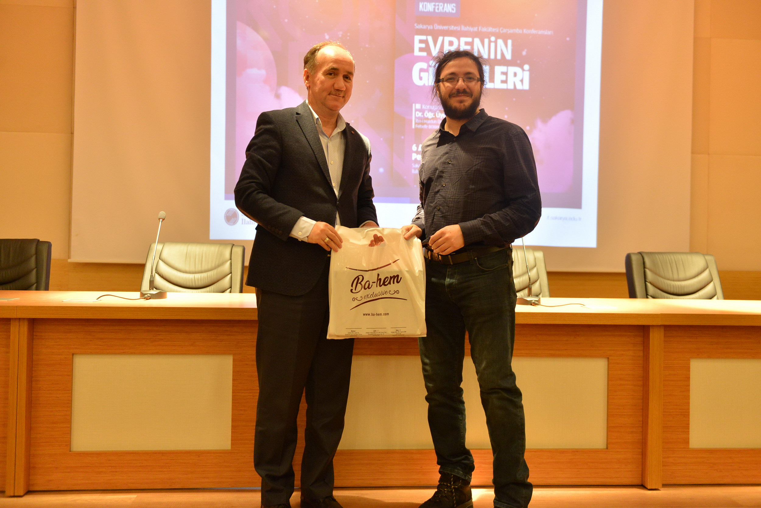 Dr. Öğr. Üyesi Enis Doko, konferansın devamında katılımcıların sorularını yanıtlarken, İlahiyat Fakültesi Dekanı Prof. Dr. Ahmet Bostancı’nın Dr. Öğr. Üyesi Doko’ya hediye takdiminin ardından konferans sona erdi.
