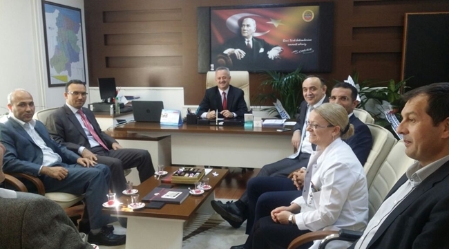 Sakarya Üniversitesi Eğitim ve Araştırma Hastanesi (SAÜEAH) Başhekimi Doç. Dr. Yakup Tomak ile hastane yöneticileri, bir süre önce göreve başlayan İl Sağlık Müdürü Doç. Dr. Aziz Öğütlü'yü makamında ziyaret etti.