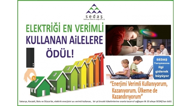 SEDAŞ (Sakarya Elektrik Dağıtım A.Ş.), web sayfasından başvuru yapan ve en verimli elektrik kullanan 10 aileye ödül verecek. SEDAŞ öncelikle çocukların bilinçlendirilmelerini hedeflerken, ailelerdeki öğrencilerin bu konuda motivasyonunu önemsiyor. Elektrik kullanıcıları başvurularını abone numaraları ile 20 Aralık 2017 tarihine kadar yapabilecek. BİLİNÇLENDİRME KAMPANYASIGelişmiş ülkelerde enerjiyi verimli ve tasarruflu kullanmanın sosyal bir sorumluluk olarak hayata geçirildiğini belirten SEDAŞ İcra Başkanı Bekir Sami Güven, “Ülkemizde enerjinin verimli kullanılması geçmişten bu yana ülke ve enerji politikası olarakta sürekli üzerinde durulan ve teşvik edilen bir konu. Tüketicilerin ve özellikle gençlerin bilinçlendirilmesine katkı sağlamak ve bu konuya SEDAŞ olarak dikkat çekmek istiyoruz” dedi. Sakarya, Kocaeli, Bolu ve Düzce’deki mesken abonelerinin katılacağı ‘Enerjimi verimli kullanıyorum, kazanıyorum, ülkeme de kazandırıyorum’ isimli projede, elektriği en verimli kullanan ve elektrik tüketiminde 2016’ya göre 2017’de bu şekilde verimlilik ve tasarruf sağlayan, ilk 10 aileye ödül verilecek.SEDAŞ WEB SAYFASINDAN BAŞVURU KOLAYVerimliliğe dikkat çekmek ve tüketicileri bilinçlendirmek üzere, başlattığı bu kampanya ile SEDAŞ, bir ilki daha gerçekleştirerek örnek bir uygulamaya imza atıyor. Kazananlara yarışma için belirlenen elektrik bedelleri ödül olarak verilecek. SEDAŞ yarışma başvurularını kağıt israfını önlemek üzere www.sedas.com web ana sayfasından alıyor. Bu sayfaya girenler, “Enerjinin Verimli Kullanılmasına Ait Önerileri”, “Yarışma Hakkında Detaylı Bilgiler Rehberini” ve “Yarışma İlanı Posterini” bu sayfada görebiliyor.CAZİP ÖDÜLLER ENERJİ BEDELİProjeye dâhil olmak isteyen tüketicilerin mesken aboneliği olması ve ailesinde en az bir öğrenci bulunması gerektiğine dikkat çeken Bekir Sami Güven bilgi verirken, “2017 yılında elektriği 2016 yılına göre en verimli kullanan ilk 10 aileden 1’inci ailenin 3.000 kilovatsaat, 2’nci ailenin 2.000 kilovatsaat, 3’üncü ailenin 1.000 kilovatsaat, 4’üncü ve 5’inci ailenin 500 kilovatsaat, diğer ailelerin ise 200 kilovatsaatlik elektrik tüketimlerini SEDAŞ üstlenecek ve bedeli ailelere ödenecek. Bireysel kullanıcıların, ailelerin ve öncelikle geleceğin mimarları çocukların bilinçlenmelerini hedefliyoruz” ifadelerini kullandı.Başvuru linki; https://www.sedas.com/tr-tr/ enerjitasarrufu/Pages/default. aspx