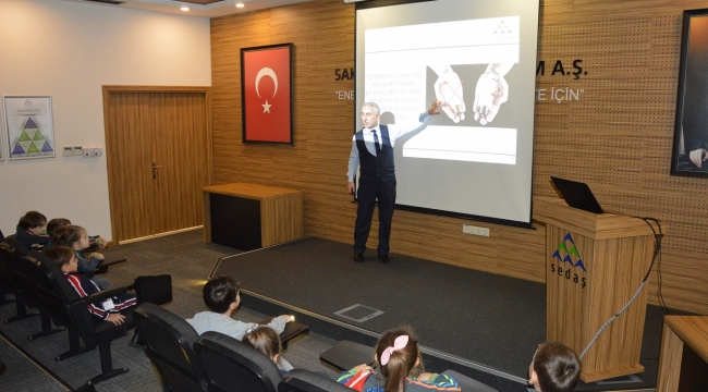 Ağaç yaşken eğilir düşüncesinden yola çıkılarak, anaokulu öğrencilerine enerjinin verimli kullanılması yönünde kafalarında belirli düşüncelerin oluşturulmasına çalışıldı. SEDAŞ Kurumsal İletişim Müdürü Ayhan Erkovan tarafından, SEDAŞ eğitim salonunda, SEDAŞ’ın görevleri, faaliyetleri, enerji tasarrufu ve enerjinin güvenli kullanılması ile ilgili bilgiler aktarıldı. Miniklerin elektrik ile ilgili bilinçlendirilmeleri sağlanırken, elektrik kullanılması sırasında dikkat edilmesi gereken önemli kurallara da dikkat çekildi. Kendilerine yapılan sunumu dikkatle dinleyen öğrenciler, SEDAŞ’ın saha çalışanlarının zorlu hava koşullarında enerji verme mücadelesi videosunu beğeniyle izlediler.