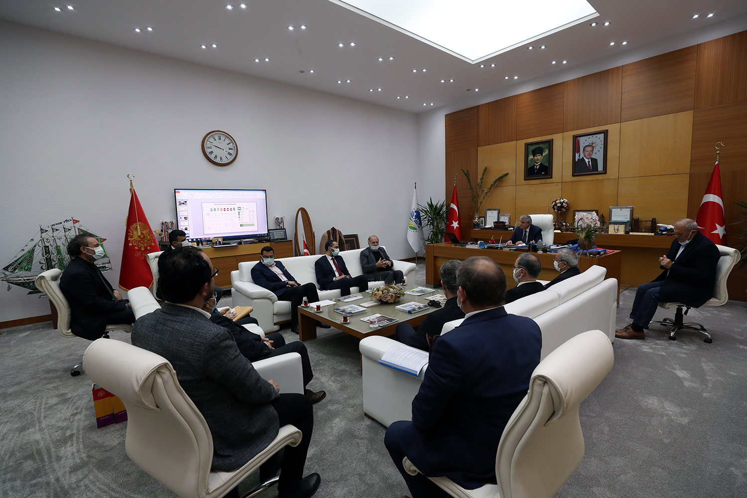 Sakarya Büyükşehir Belediye Başkanı Ekrem Yüce, Kültür ve Turizm Bakanlığı Kütüphaneler Genel Müdürü Ali Odabaş ve bakanlık yetkililerini makamında ağırladı. Sakarya İl Kültür ve Turizm Müdürü Süleyman Acar, Başkan Danışmanı Prof. Dr. Mustafa İsen, Vali Yardımcıları Ersin Emiroğlu ile Erdoğan Ülker, Genel Sekreter Mustafa Ak, Genel Sekreter Yardımcıları Ali Oktar, Bedrullah Elçin, Furkan Beşel ile Kültür ve Sosyal İşler Dairesi Başkanı Resul Narin’in katıldığı toplantıda Sakarya’ya kazandırılacak modern şehir kütüphanesi projesi görüşüldü. Kültür ve Turizm Bakanlığı Kütüphaneler Daire Başkanı Ahmet Aldemir ise toplantıda ‘Küresel Ölçekte Kütüphaneler’ adlı sunum gerçekleştirdi. Dikkat çekecek bir proje Sakarya’ya çok modern bir şehir kütüphanesi projesi hazırladıklarına değinen Kütüphaneler Genel Müdürü Ali Odabaş, “Şehrin kalbinde yaşayan bir kütüphane Sakarya’ya çok yakışacaktır. Bakanlığımızın yatırımı programında olan çok özel ve modern bir projeyi Sakarya’ya kazandıracağız. Projemiz hem mimarisiyle hem de içerisinde bulundurduğu zenginlikle şehirde yaşayan vatandaşlarımızın yanı sıra şehre misafir olarak gelen tüm herkesin dikkatini çekecektir” dedi. Şehrin prestij noktası olacakProjenin başlangıcından itibaren içerisinde bulunduğunu ifade eden Prof. Dr. Mustafa İsen, “Şehrimiz en değerli arsalarından bir tanesini bakanlığımıza veriyor. Bakanlığımızda burada şehrin kalbinde çok modern bir şehir kütüphanesini Sakarya’mıza kazandıracak. Şehir kütüphanesi projemiz hayata geçtiğinde mimarisi ve içerisinde bulundurduğu zenginlikle şehrimizin prestij noktası olacaktır. Dünyada bir sürü ünlü opera binası var. Milyonlarca insan o binaları ziyaret ediyor ancak içerisinde bir müzikal dinlemek için değil o binanın yapısını, mimarisini beğendiği için ziyaret ediyor. Bu düşünceyle hazırlanmış olan bu projemiz şehrimize büyük bir değer katacaktır” dedi. Kültür alanında temel ihtiyaç kütüphaneYaşamın ve kültürün cazibe merkezi olacak bir şehir kütüphanesini Sakarya’ya kazandırmak istediklerini ifade eden Başkan Ekrem Yüce, “Kütüphanemizi inşa edeceğimiz yer hazır. Projemiz hazır. Kültür Bakanımız ve bakan yardımcılarımızda projemize vakıflar. Biz şehir olarak her şeyi yapacağız. Kültür alanında temel ihtiyaçlardan bir tanesi kütüphanelerimiz. Ortak ticari bir amaç gütmeyen ve şehrimizde ki her kesimden insanın bir şehir kütüphanesinde boş vakitlerini değerlendirdiği, içerisinde bulundurduğu zengin içeriklerle zamanın kaybolduğu bir kütüphaneye şehrimizin ihtiyacı var. Şehrimizin en önemli ve değerli arsalarından bir tanesinin üzerinde adeta şehrin kalbinde inşa edeceğimiz şehir kütüphanesi, yaşamın ve kültürün cazibe merkezi olacak” dedi.