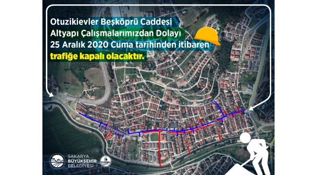 Sakarya büyükşehir belediyesi Su ve Kanalizasyon İdaresi (SASKİ), su kayıplarının önüne geçmek ve içmesuyunu kesintisiz bir şekilde musluklara ulaştırmak için Serdivan İlçesi’nde çalışmalara başladı. İlk etapta 32 Evler Mahallesi’nde başlatılan çalışmalar sayesinde bölgeye toplam 4 bin 385 metre uzunluğunda yeni altyapı ağı kazandırılacak. 2 bin 396 metre uzunluğunda içmesuyu hattı ile su kayıpları en aza indirilirken, uzun yıllardır yağmursuyu sorunu olan 32 Evler Mahallesi bölgesi için bin 989 metre uzunluğundaki yağmursuyu hattı ile yoğun yağışlarda yaşanabilecek olumsuzlukların da önüne geçilecek. Bu çalışmalar için 25 Aralık 2020 tarihinden itibaren Beşköprü caddesinin bir bölümünü trafiğe kapatılacaktır. Yerleşim yeri içindeki vatandaşlarımızın evlerine ulaşımı sağlanacaktır.