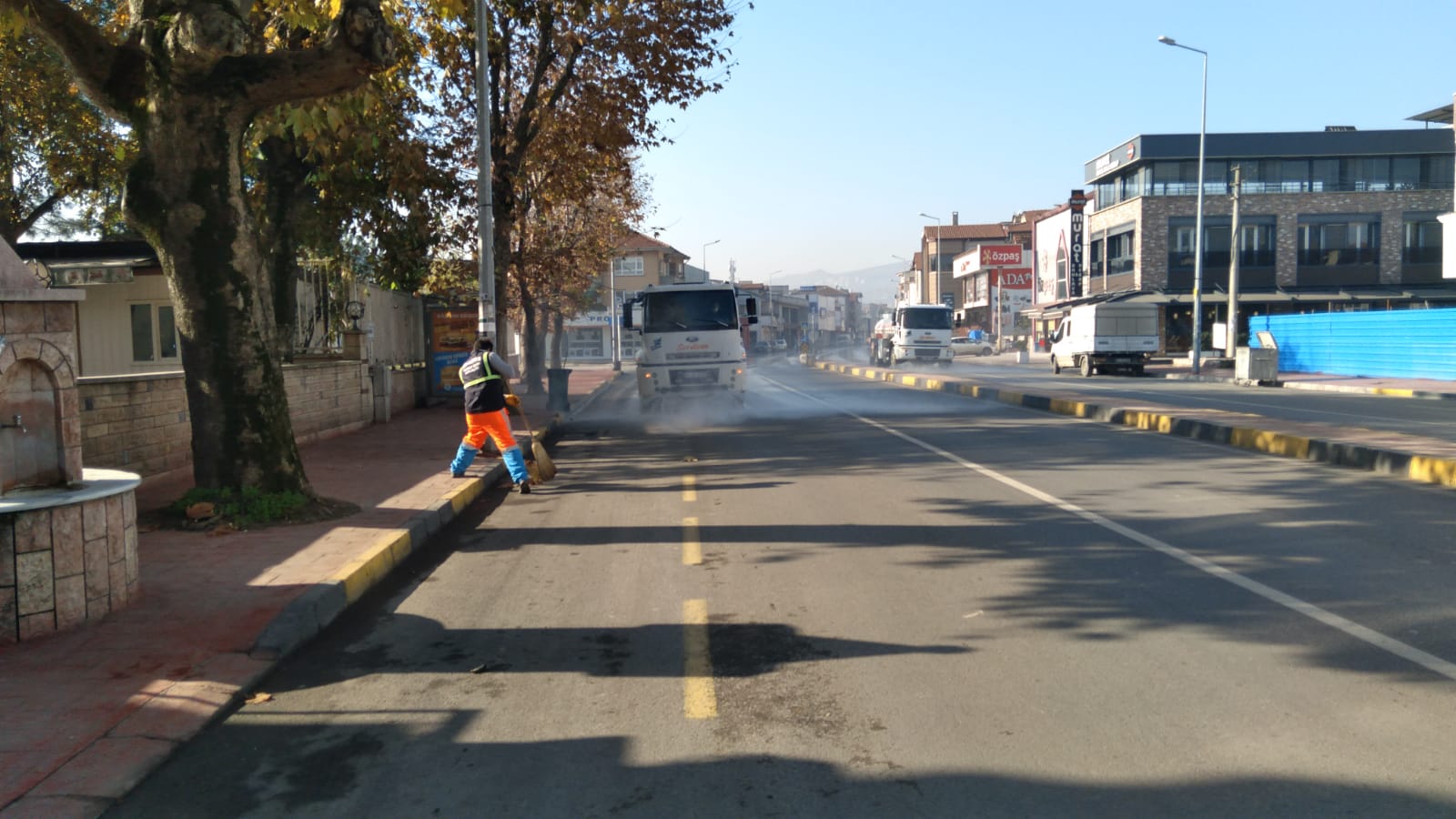 Temizlik İşleri Müdürlüğü’ne bağlı ekipler tarafından cadde ve sokaklar ilaçlı sularla temizlenirken, ilçedeki çöp konteynerleri da konteyner dezenfekte aracı ile dezenfekte edildi.İki günlük sokağa çıkma kısıtlaması kapsamında yaya ve araç trafiğinin olmadığı cadde ve sokaklar, hem dezenfekte araçlarıyla hem de gezici ekipler tarafından detaylı olarak temizlendi.Kısıtlamalara bağlı olarak alanların boş kalmasını fırsat bilen Temizlik İşleri Müdürlüğü ekipleri vatandaşların yoğun olarak kullandıkları ATM ve camiilerin çevresinde de temizlik ve dezenfekte çalışması gerçekleştirdi.