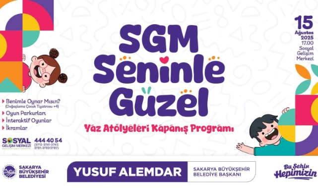 Sakarya Büyükşehir Belediyesi Sosyal Gelişim Merkezi’nde (SGM) 6 hafta boyunca devam eden yaz kursları, görkemli bir kapanış programıyla sona erecek. 15 Ağustos Cuma günü saat 17.00’de gerçekleşecek etkinlikte, çocuklar ve aileleri unutulmaz bir gün yaşayacak.Çocuklar hem öğrendi hem eğlendi7-14 yaş arası çocuklara yönelik düzenlenen yaz kursları, bu yıl da büyük ilgi gördü. Sanattan müziğe, yabancı dilden robotik kodlamaya kadar birçok alanda eğitim verilen kurslarda çocuklar hem eğlendi hem de yeni beceriler kazandı.Yaz tatili verimli geçtiSatranç, bağlama, İngilizce, akıl oyunları, drama, tasarım, Kur’an-ı Kerim ve değerler eğitimi, robotik ve kodlama, mutfak, resim ve kara kalem gibi çeşitli branşlarda eğitim alan çocuklar, yaz tatilini verimli şekilde geçirme fırsatı buldu.Etkinliklerle dolu kapanış programıKapanış programında çocuklar, eğitmenleri eşliğinde hazırlayacakları meyve tartolet gibi ikramları davetlilere sunacak. Ayrıca, strateji ve dikkat geliştiren ahşap masa oyunları, ritim çalışmaları, interaktif aktiviteler, renkli panayır oyunları ve fiziksel beceriyi destekleyen mini parkurlar ile eğlence dolu bir gün yaşanacak.Tiyatro gösterimi ve sürpriz ikramlarProgramda ayrıca, Fatih Sancaklı’nın sunumu ve yönetmenliğini üstlendiği “Benimle Oynar Mısın?” adlı doğaçlama çocuk tiyatrosu sahnelenecek. Yüz boyama, sosis balon, taş süsleme gibi atölyelerle etkinlik renklenecek. Gün sonunda ise tüm katılımcılara fidan ve dondurma ikram edilecek.Tüm çocuklar ve aileler davetliSosyal Hizmetler Daire Başkanlığı tarafından yapılan açıklamada, “6 hafta boyunca süren yaz kurslarımızın finalini hep birlikte kutlamak istiyoruz. 15 Ağustos Cuma günü saat 17.00’de Sosyal Gelişim Merkezi’nde düzenleyeceğimiz kapanış programına tüm çocuklarımızı ve ailelerini bekliyoruz” denildi.
