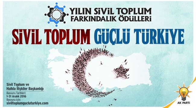 AK Parti İl Başkan Yardımcısı, Sivil Toplum ve Halkla İlişkiler Başkanı Fevzi Gürsoy, yaptığı yazılı açıklamada, “Yılın Sivil Toplum Farkındalık Ödülleri” organizasyonunu, güçlü bir Türkiye’nin ancak güçlü bir sivil toplum anlayışı ile mümkün olabileceği düşüncesiyle gerçekleştirdiklerine dikkat çekti.Gürsoy, mesajında şu ifadelere yer verdi:“Demokrasinin gelişimi için sivil toplumun, sivil toplumun gelişimi için de demokrasinin vazgeçilmez olduğuna inanıyor, sivil toplum kuruluşlarının güçlü ve etkin olduğu katılımcı demokratik bir Türkiye için var gücümüzle çalışıyoruz. Sivil toplum kuruluşlarına olan ilgiyi arttırmak, sivil toplumun öneminin altını çizmek ve toplumsal birlikteliği güçlendirmek adına düzenlediğimiz bu organizasyon kapsamında ülkemizin dört bir yanında ve uluslararası arenada faaliyet gösteren sivil toplum kuruluşlarının projelerini ödüllendireceğiz. Farkındalık ödüllerine aday gösterilecek olan projeler, İnsan Hakları, Kültür ve Sanat, Eğitim, Kadın, Sosyal Sorumluluk, Yardımlaşma/İnsani Yardım, Hayvan Hakları, Çevre, Bilim ve Teknoloji, Gençlik ve Spor olmak üzere 10 ana kategoride yarışma fırsatı bulabilecek.” Recep Tayyip Erdoğan özel ödülüOrganizasyon kapsamında aday gösterilen 3 projeye, ayrıca 3 adet özel ödül verileceğini de belirten Gürsoy, “Yılın en etkili sivil toplum projesine Kurucu Genel Başkanımız ve Cumhurbaşkanımız “RECEP TAYYİP ERDOĞAN ÖZEL ÖDÜLÜ” takdim edilecek. Özel ödüller kapsamında “En İyi Mikro Proje” ve “En Özgün Yardım Projesi” isimli iki ödül daha verilecek.” dedi.Tüm Sivil Toplum Kuruluşlarının ödüllere aday olabileceğini ifade eden Gürsoy, vatandaşların da ödül almasını istedikleri projeleri aday gösterebileceğini kaydetti. Başvurular 1 Aralık - 31 Aralık 2016 tarihleri arasında siviltoplumgucluturkiye.com adresinden gerçekleştirilecek ve 1 Ocak - 10 Ocak 2017 tarihleri arasında jüri tarafından değerlendirilmeye tabi tutulacak. Ödüller, AK Parti Genel Başkanı ve Başbakanımız Binali YILDIRIM’ın sivil toplum kuruluşlarının temsilcileri ile bir araya geleceği bir programda sahipleriyle buluşacak.