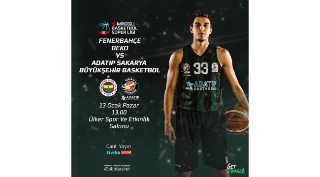 Adatıp sakarya Büyükşehir basketbol Spor Kulübü, Tahincioğlu Basketbol Süper Ligi 15. hafta programı kapsamında fenerbahçe Beko ile karşılaşacak. 13 Ocak Pazar günü Ülker Spor ve Etkinlik Salonu’nda oynanacak zorlu mücadele saat 13.00’da başlayacak ve Tivibu Spor’dan canlı olarak yayınlanacak. Ligin ilk yarısının son karşılaşmasına çıkacak olan Büyükşehir Basketbol zorlu mücadeleden galibiyetle ayrılmak istiyor. Büyükşehir Basketbol ligde topladığı 17 puan ile 14. sırada bulunuyor.