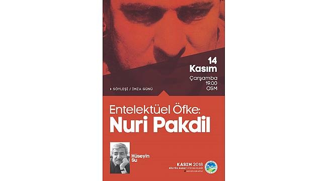 Büyükşehir Kasım Kültür Sanat Etkinlikleri ‘Entelektüel Öfke: Nuri Pakdil’ kitabının söyleşisi ve imza günü programı ile devam edecek. 14 Kasım Çarşamba günü OSM’de gerçekleştirilecek etkinlik saat 19.00’da başlayacak.