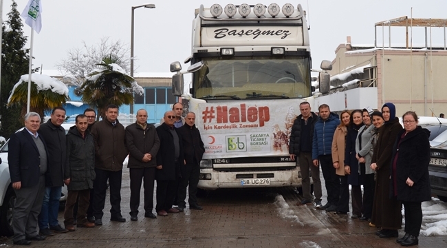 STB Yönetim Kurulu Başkanı Cevdet METE ve Sakarya kızılay Başkanı Zahit Tiryaki'nin imzaladıkları protokol ile başlatılan Halep'e yardım Kampanyası malzemeleri STB Yönetim Kurulu Üyeleri, sakarya Kızılay Yönetim Kurulu üyeleri, STB Çalışanları ve Genç Kızılay eşliğinde Halep'e gönderildi.Sakarya Ticaret Borsası Yönetim Kurulu Başkanı Cevdet Mete sakarya ticaret borsası olarak "Halep yalnız değildir" dedik. Kızılayımız ile Halep'teki kardeşlerimiz için bir yardım kampanyası başlattık. Bugün bu tırlarla sadece yardım malzemesi değil Sakarya’mızın, dostluk ve kardeşlik mesajını da gönderiyoruz. Bu zorlu kış şartlarında Halep'teki kardeşlerimizin yalnız olmadıklarını hissetmelerini istedik. Gün birlik olma günüdür." mesajını toplu bir şekilde vurgulamak istedik. İfadesini kullandı.