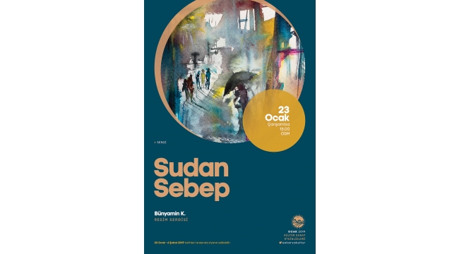 ‘Sudan Sebep’ resim sergisi OSM’de AçılıyorSakarya Büyükşehir Belediyesi Ocak Kültür Sanat Etkinlikleri Sanatçı Bünyamin K. tarafndan hazırlanan ‘Sudan Sebep’ isimli resim sergisi ile devam edecek. 23 Ocak Çarşamba günü Ofis Sanat Merkezi’nde gerçekleştirilecek sergi saat 18.00’da başlayacak. Kültür ve Sosyal İşler Dairesi Başkanlığı tarafından yapılan açıklamada, “23 Ocak Çarşamba günü gerçekleştirilecek olan sergimize tüm Sakaryalı sanatsever dostlarımız davetlidir” ifadeleri kullanıldı.
