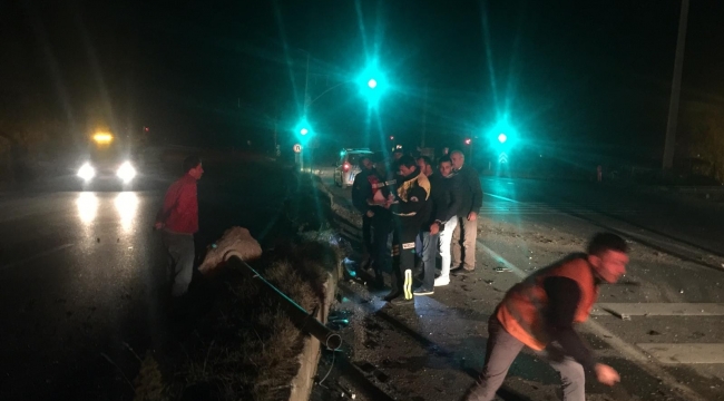 Karasu ilçesinde meydana gelen trafik kazasında takla atarak sinyal direğine çarpan otomobilden 2 kişi burnu bile kanamadan çıktı.