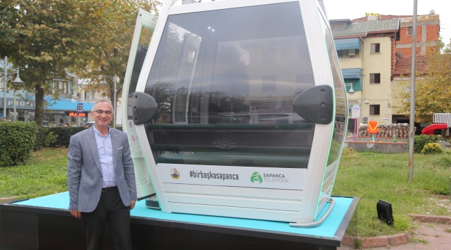 Sapanca Belediyesi tarafından hayata geçirilecek olan, Teleferik Projesi’nin tanıtımı amacıyla belediye bahçesine birebir boyutlarındaki teleferik kabini konuldu.