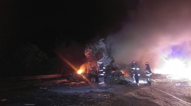 Edinilen bilgilere göre, akyazı ilçesi TEM otoyolunda İstanbul’dan Ankara İstikametine gitmekte olan 18 BC ... plakalı sunta yüklü kamyonun ön lastiği patladı. Durumu fark eden kamyon sürücü kamyonu emniyet şeridine çektiği sırada aynı istikamete giden ve plakası öğrenilemeyen tır kamyona arkadan çarptı. Çarpışmanın etkisiyle tırın ön kupası arkaya kadar ezildi. Ezilen kupada çarpışma sonrası yangın çıktı. Çıkan yangın hızla büyüyerek bütün tırı sardı. Durumu gören diğer sürücüler hemen itfaiye ve sağlık ekiplerine haber verdi. Olay yerine çok sayıda itfaiye ve sağlık ekibi sevk edildi. İl merkezi ve ilçelerden çok sayıda olay yerine gelen sakarya Büyükşehir Belediyesine bağlı itfaiye ekipleri çıkan yangına kısa sürede müdahale etti. Tır yangını söndürülmesinin ardından tırın içinde sıkışan iki kişi yanarak can verdiği ortaya çıktı.